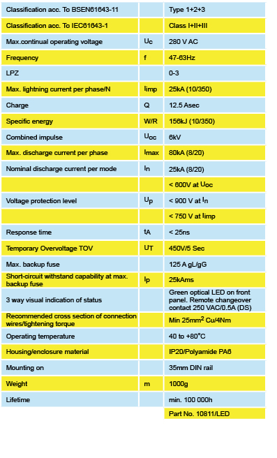 Enhanced protection to BSEN62305, BSEN61643-11 & BS7671.