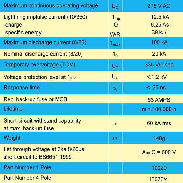 Fully compliant to BSEN61643-11, BSEN62305 & BS7671.